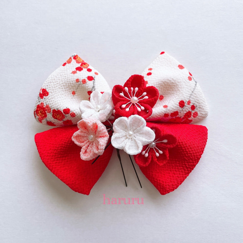 | メーカー | つまみ細工リボン髪飾り 赤 白 七五三 成人式 浴衣 卒業式 花魁 結婚式 つまみ細工の髪飾り【赤白リボンと小花】成人式 |